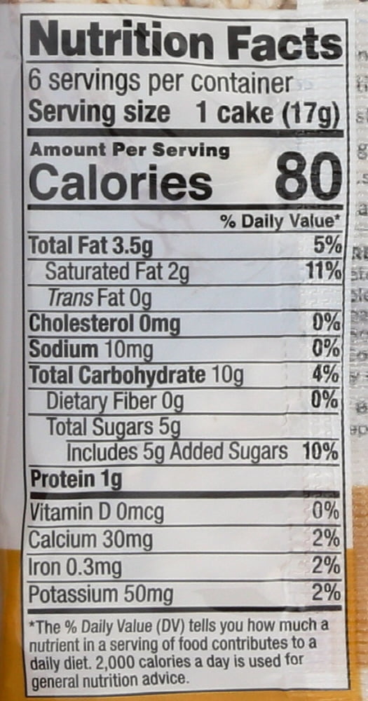 Are Rice Cakes Vegan And Gluten-Free? When shopping around for rice cakes, always read the ingredient label to determine if gluten is present in the list. Most plain rice cakes will not contain gluten and may have a gluten-free label present. This means that they are safe to consume without concern for gluten. It's a good idea to look for the gluten-free label on rice cakes. Rice cake, cracker (include hain mini rice cakes) Nutrition Facts ... The good: This food is low in Saturated Fat and Sodium, and very low in Cholesterol. Caloric Ratio Pyramid Caloric Ratio Pyramid for Rice cake, cracker (include hain mini rice cakes) This feature... Chocolate Rice Cakes Nutrition Label - Semira Girma This article examines rice cake nutrition and the health. 11.01.2022 · white rice nutrition facts. 11.01.2022 · white rice nutrition facts. Summer has worked in food … Summer has worked in food … They are gluten free and made with 8g to 15g whole grains. Quaker is serving up wholesome goodness in delicious ways from old fashioned oats ...