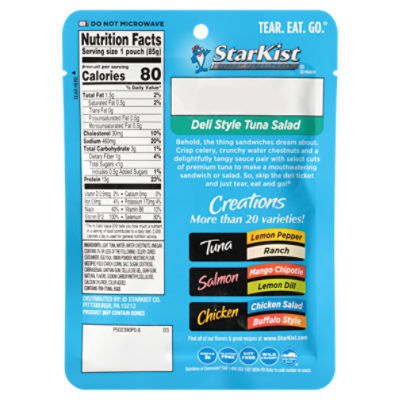 StarKist Chunk Light Tuna in Oil, 5 Oz, Pack of 48 - amazon.com StarKist tuna in oil is a great and easy way to add seafood to your diet. VERSATILE: StarKist Chunk Light Tuna in oil is a versatile and easy way to liven up a meal. It can be used in cool tuna salads, hot casseroles, on sandwiches, and even eaten on its own as a snack or meal! ... *See label for complete nutritional information. Wild Caught .