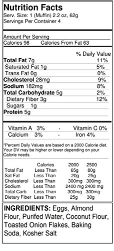 Mikeys Muffins, Muffin English Cinnamon Raisin Gluten Free, 8.8 Ounce Product of United States Nutrition Facts Serving Size Volume 1 Serving Size Weight 2.2 Oz Servings Per Package 4 Calories 98 Calories From Fat 63 Total Fat 7 G 10.76% Saturated Fat 1 G - 5% Trans Fat 0 G Cholesterol 28 Mg - 9.33% Sodium 179 Mg - 7.45% Total Carbohydrates 6 G - 2% Dietary Fiber 3 G - 12% Sugars 3 G Protein 5 G - 10% Vitamin A - 3... Drupal - Open Source CMS | Drupal.org diff --git a/core/assets/vendor/zxcvbn/zxcvbn-async.js b/core/assets/vendor/zxcvbn/zxcvbn-async.js new file mode 100644 index 0000000..404944d --- /dev/null +++ b ... Muffins Original, 8.8 oz at Whole Foods Market Mikey's, Muffins Original, 8.8 oz, Ingredients, Nutrition Facts, Ingredients: Water, Eggs, Almond Flour, Coconut Flour, Apple Cider Vinegar, Egg Whites, Baking Soda, Sea Salt, Allergens, Eggs, Tree Nuts, Dairy-Free, Gluten-Free, Kosher*, Paleo-Friendly, Sugar-Conscious, Vegetarian, Whole Foods Diet, Keto-Friendly, 7 Best Keto Diet Breads You Can Eat Without Guilt - Real Balanced 13/11/2019 · When determining the net carbs, subtract the fiber and sugar alcohols from the total carbs on the nutrition facts label. Generally speaking, most people on the keto diet should only consume 20-60 grams of carbs per day. ... Mikey’s is a brand you’re more likely to see in a grocery store. Most commonly known for their English muffins, they ...