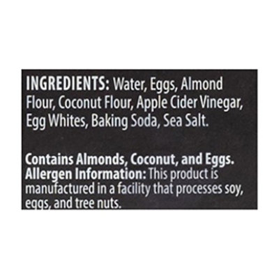 Hearty & healthy - Mikey's muffins nutrition facts, 13 servings per container, Serving Size 1 slice (46g) Calories 130, ingredients, Eggs, Almond Flour, Water, Apple Cider Vinegar, Coconut Flour, Tapioca Starch, Golden Flaxseed Meal, Honey, Baking Soda, Egg Whites, Kosher Salt. (Contains tree nuts and eggs). Certified Paleo, Dairy Free, Gluten Free, Non-GMO, Soy Free, Grain Free,
