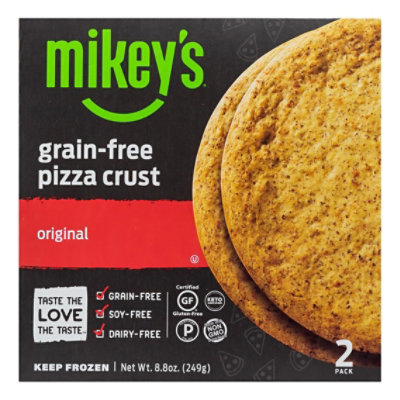 Mikeys Muffins Pizza Crust Frozen - 8.8 Oz - Safeway Cooking Instructions: 1. Preheat your oven to 400 degrees F 2. Remove your fully cooked Mikey's Pizza Crust from the packaging and place on an oven safe baking tray. 3. Top your Mikey's Pizza Crust with your favorite sauce and toppings. 4. Bake until a visual doneness and heated throughout (7-15 min depending on toppings).