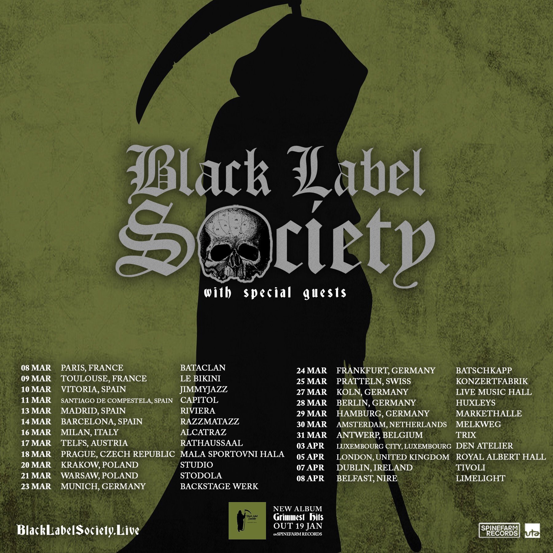 Black Label Society Tickets, 2022 Concert Tour Dates & Details Buy tickets for Black Label Society concerts near you. Get 2022 tour dates, venue details, concert reviews, photos and more at Bandsintown.