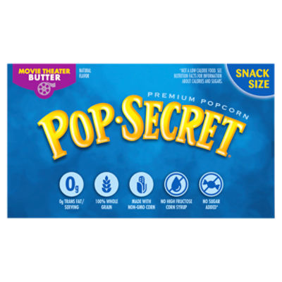Pop Secret Popcorn Premium Butter - 3-3 Oz - Albertsons No added sugar (See nutrition facts for information about calories and sugar). Made with non-GMO corn. Good pop! No artificial preservatives, flavors, ...