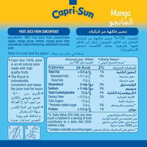 Capri sun food label. Capri Sun Nutrition Facts. Calories, carbs, fat, sodium & more ... Capri Sun Nutrition Facts. Calories, carbs, fat, sodium & more • MyFoodDiary® Food Brands > Capri Sun Search foods 38 items Capri Sun Capri Sun cuts sugar 40% by reformulating with monk fruit - Food Dive Capri Sun has reformulated its original juice drink pouches with monk fruit concentrate, which reduces the sugar per serving by an average of 40%, Kraft Heinz says. This is the largest renovation ... Capri Sun Roaring Waters Juice Box, 60 Ounce - 40 count This item: Capri Sun Roaring Waters Juice Box, 60 Ounce - 40 count. $36.95 ($0.15/Ounce) In Stock. Sold by The Market Space and ships from Amazon Fulfillment. Get it as soon as Friday, Jan 13. Welch's Fruit Snacks, Mixed Fruit, Gluten Free, Bulk Pack, 0.9 oz Individual Single Serve Bags 40 Count (Pack of 1) $8.48 ($0.21/Count)